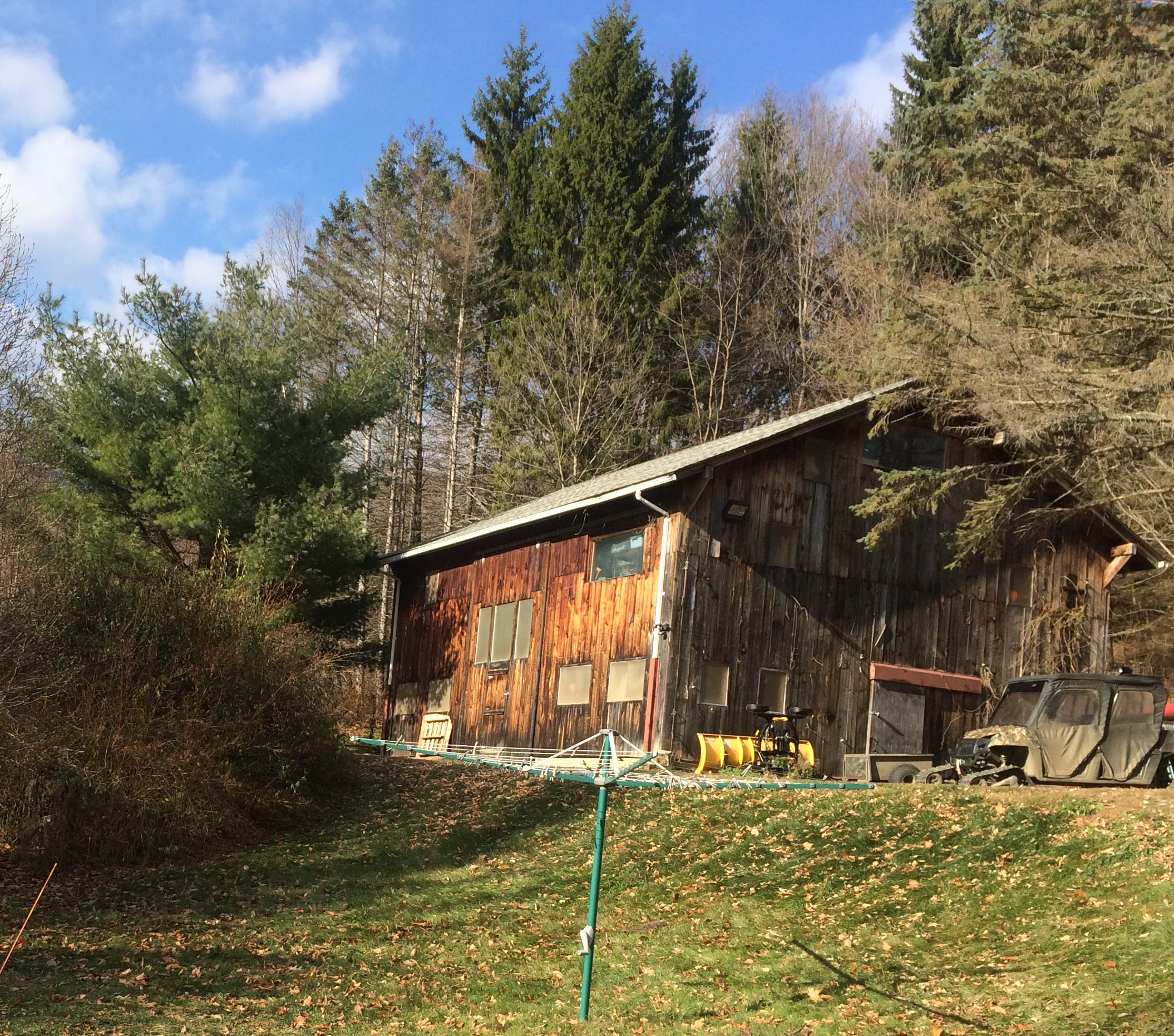 Over the years I have paved the road and installed a new road, built barns and an off-grid cabin. Buried the phone and power lines. One barn is large enough to park an RV, a pick up and an ATV. The other has a steel frame and a hoist. Drilled well in addition to gravity-fed spring water system. Dead end, gated, town maintained road. Surrounded by thousands of acres of woodlands. No manufacturing or agricultural chemicals ever nearby. Solar power with battery bank and a micro hydro system currently offline but easily started again. Open pasture land and woodland with private, pristine watershed feeding year round Thompson Brook with picturesque waterfalls as well as brook trout, crayfish, salamanders in a healthy ecosystem. Pond and off grid cabin with out-house. Root Cellar. Greenhouse. 3 barns, woodshed, fenced organic, food forest garden with garden shed. Black walnut plantation. Mature landscape with a breathtaking spring parade of flowering ornamentals and perennials, and many fruit trees as well as raspberries, grapes and blueberries. Wildlife abounds: deer, turkey, bear, coyote, rabbit, fox and many more.