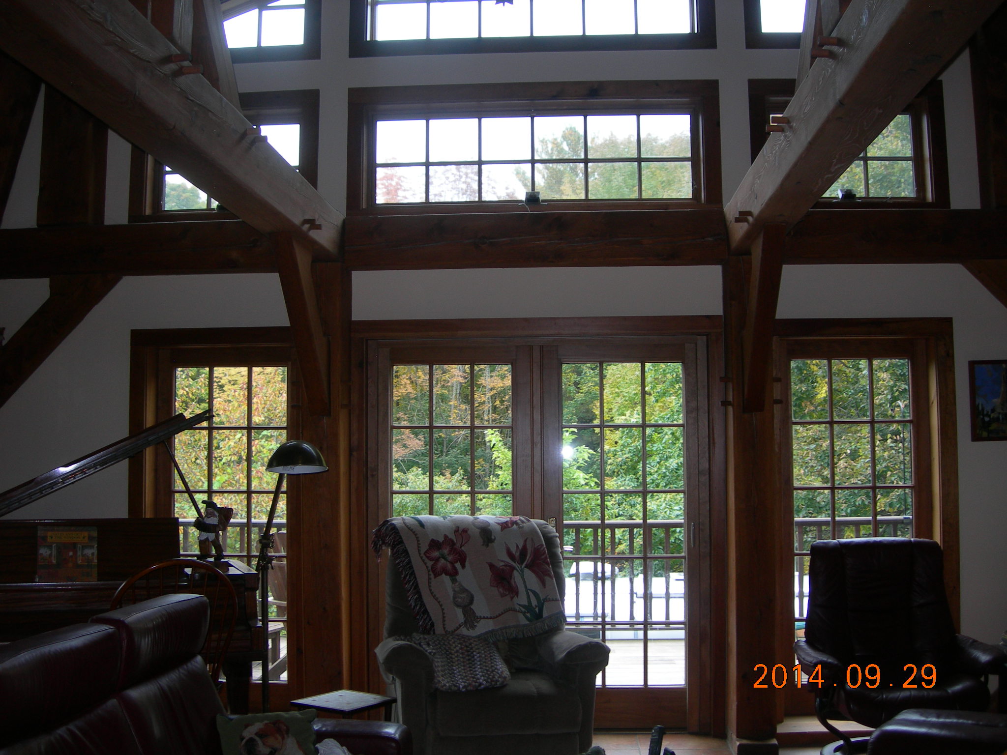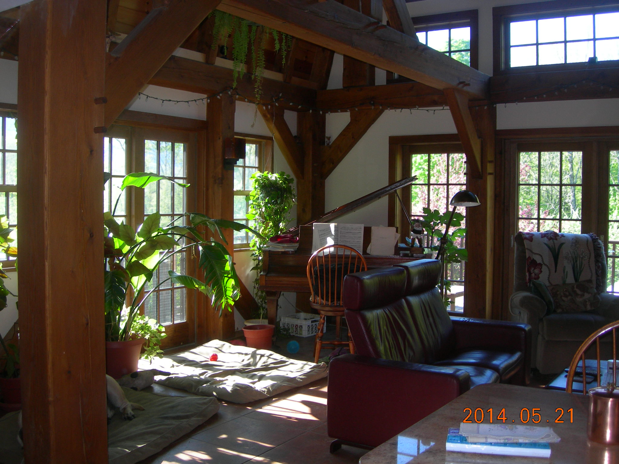 3500 sq. ft. foot home with timber frame addition. 4 bedrooms, 3 baths, living room, dining room, 2 home offices, den, 2 kitchens (granny unit at ground level.) Purchased in 1978 as a one story brick ranch house with a finished walk-out basement apartment, steel frame and attached 2 car garage. From 2007 – 2010 I did a million+ dollar renovation, adding a timber-frame great room, and a second story including a master suite with 2 home offices and upper deck. Quality materials throughout: oak, cherry, mahogany, ipe, granite, marble, copper.